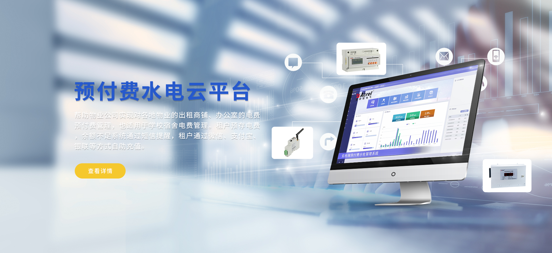 安科瑞提供的解決方案包括Acrel-EIoT能源物聯網云平臺、變電所運維云平臺安全用電管理云平臺、環保用電監管云平臺、智慧消防云平臺、能源管理云平臺、工業企業能源管控平臺、遠程預付費云平臺餐飲油煙監管云平臺、電動汽車/電瓶車充電樁收費管理云平臺、電力監控/無線測溫系統、電能質量治理系統、電氣火災監控系統、消防設備電源監控系統防火門監控系統、應急照明和疏散指示系統、智能照明控制系統、醫用隔離電源絕緣監測系統等,幫助用戶實現能源智能化、可視化、精細化管理,提高用能效率和用能安全,為企業節能降耗和實現能源數字化建設提供數據服務。